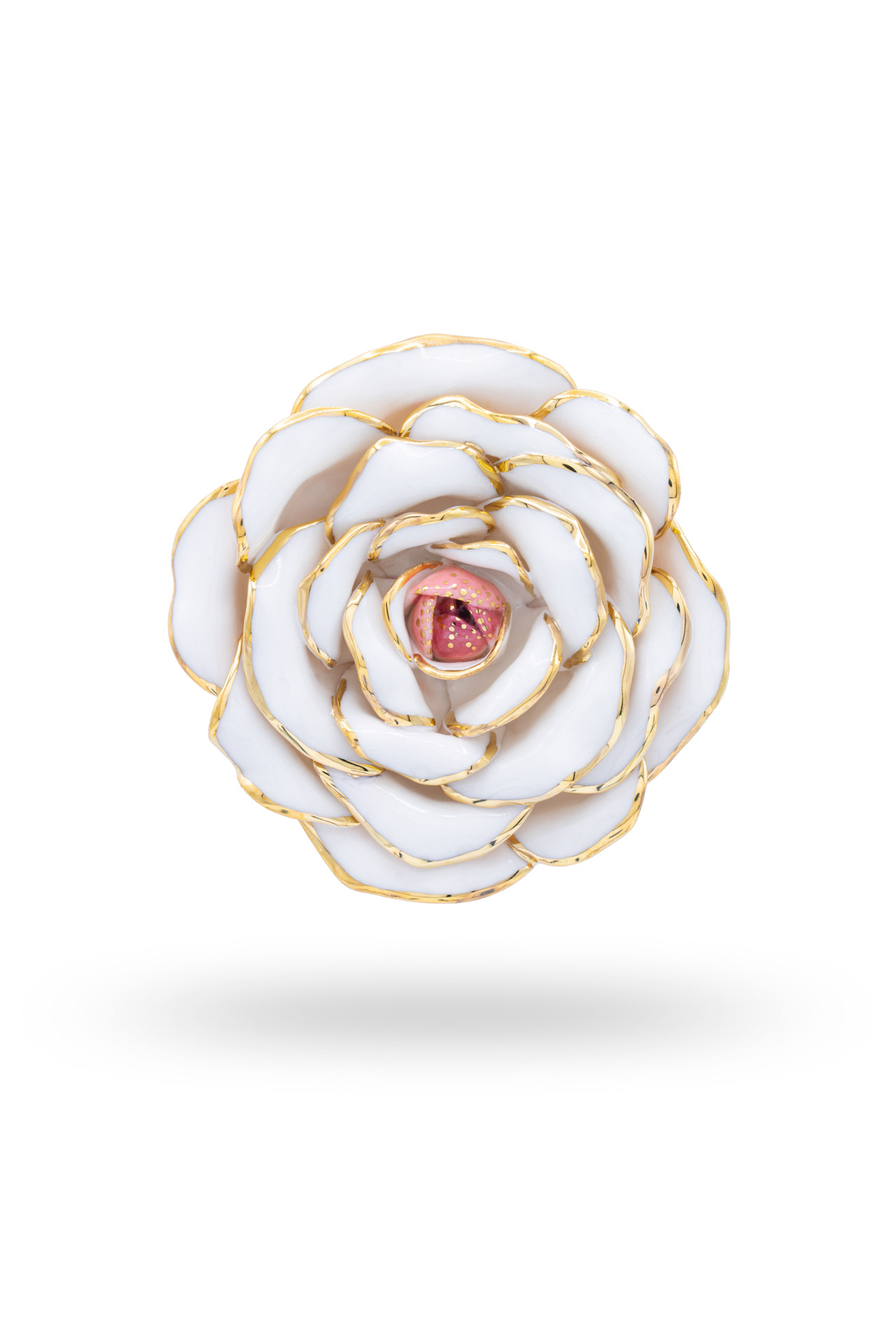 Spilla floreale in porcellana dipinta a mano, un pezzo unico realizzato nel nostro atelier. Modellata con cura e arricchita da dettagli in oro 24 carati, questa spilla elegante racchiude la delicatezza della natura in un accessorio senza tempo, perfetto per look femminili e raffinati.