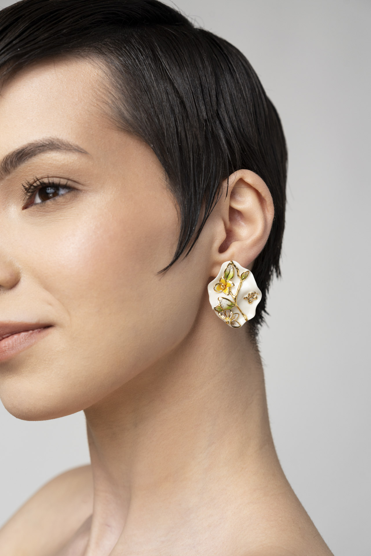 La collezione Mother Nature celebra la delicata bellezza della natura attraverso gioielli in porcellana interamente realizzati a mano. Ogni creazione è modellata e dipinta con cura, mettendo in primo piano l’eleganza dei motivi floreali, armoniosamente completati da dettagli ispirati alla natura: farfalle, coccinelle, uccelli e frutti.